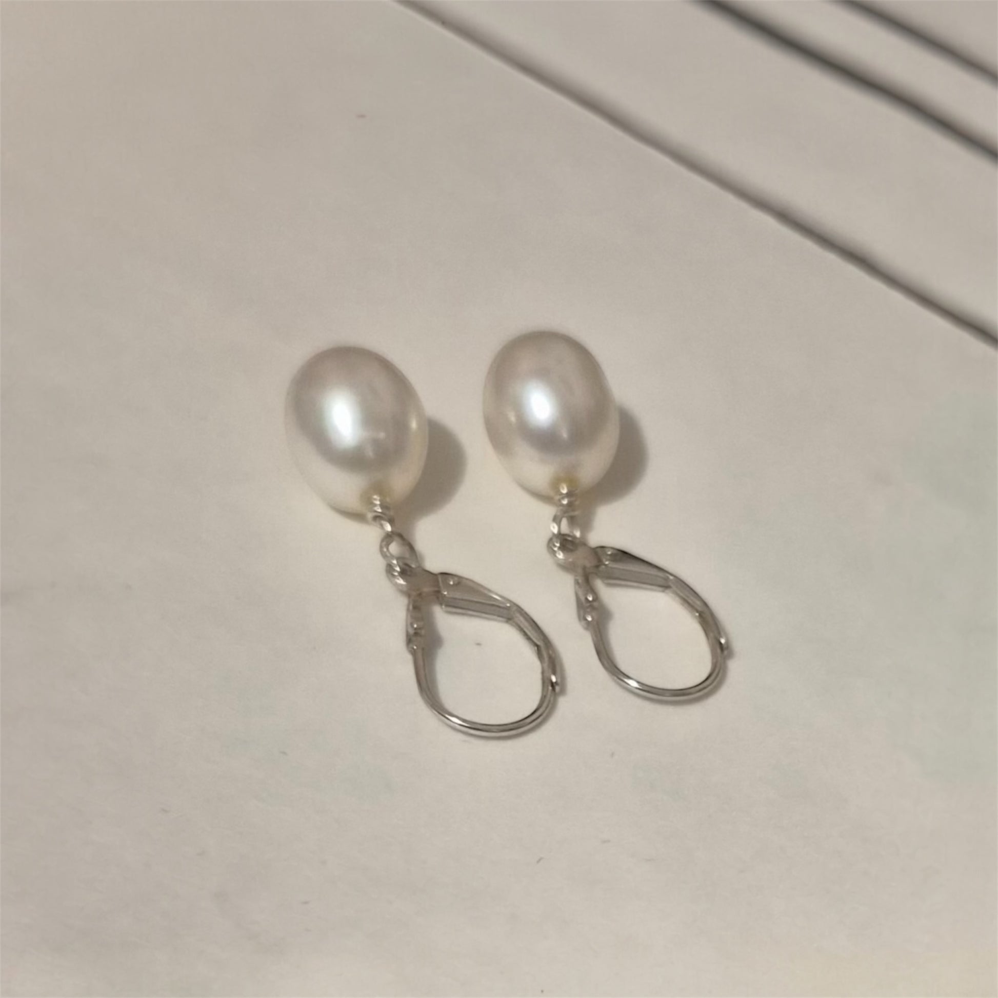 Cultured Pearl | 10mm White | Leverback Earrings - 925 Sterling Silver